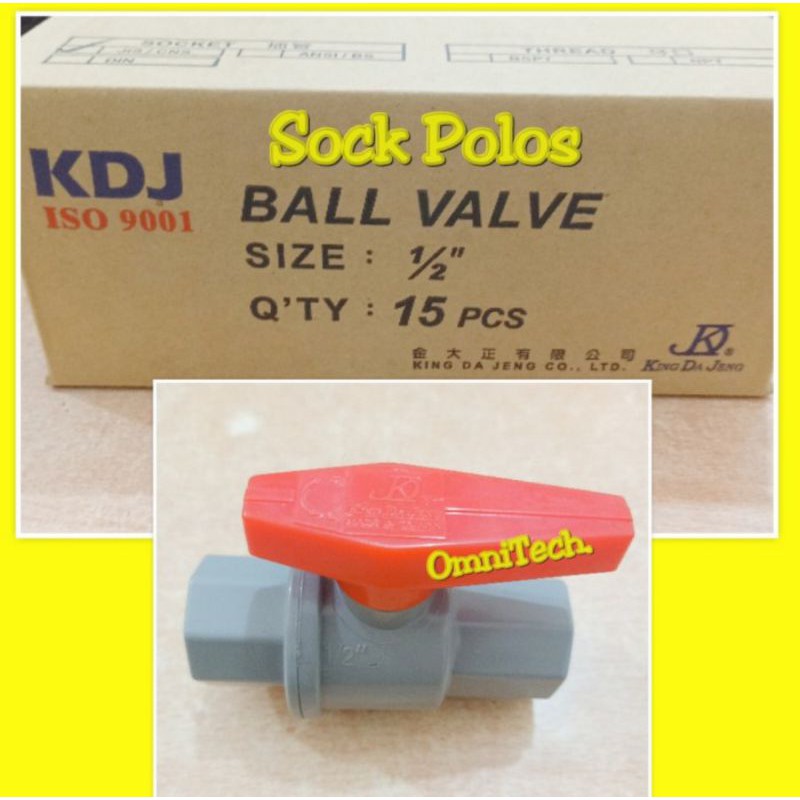 Ball ValveKing Da Jeng (KDJ)Made in TaiwanSok (Polos - tanpa Drat) PVC 1/2"Harga per Pc"Putaran / Kran" Ball Valve KDJ "Ringan / Mudah Dip