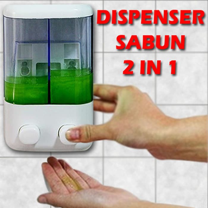 Dual / Double 2 in 1 Manual dispenser sabun hand soap tempat sabun cair cuci tanganyou can install hand sanitizer, foam bath gel or shampoo, Easy to install, use clean, no leakage, is an essential product per household, hotels, bathrooms and other public places.Dispenser ini dapat anda tempatkan di mana saja, baik di kamar mandi, di dapur dan dimanapun yang anda inginkan.Cocok untuk rumah pribadi,rumah sakit, hotel, salon, kantor dll. Anda juga dapat mengisinya dengan berbagai jenis sabun termasuk sabun tangan, sabun mandi, deterjen piring, dan pembersih tangan dalam bentuk gel / LI