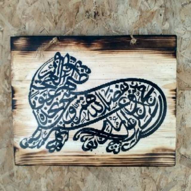 Name: Hiasan Interior Lukisan Kaligrafi Macan Ali Kayu Jatibelanda Bakar Islami Natural