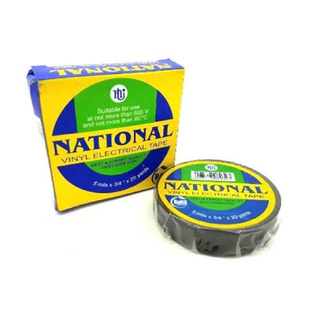 Nasional Tape Vinyl Electrical / Solasi KabelMerk : NationalWarna : HitamMaterial : VinylUkuran : 5 mils x 3/4" x 20 yardsIsolasi Kabel / Listrik National merupakan isolasi dengan kualitas tinggi dengan harga yang terjangkau. Digunakan untuk aplikasi elektrikal, dengan tegangan tidak lebih dari 600V dan suhu tidak lebih dari 80 derajat Celcius.!!! HARAP MENANYAKAN STOCK TERLEBIH DAHULU SEBELUM ORDE
