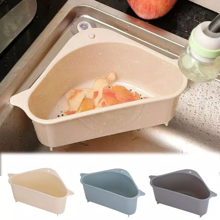 Rak Holder sudut berbentuk segitiga mempunyai banyak manfaat yang baik seperti sebagai pengering, menampung potongan sayur, sponge, kotoran di sink/wastafel dan manfaat lainnya.Terbuat dari plastik ramah lingkungan tidak beracun dan aman digunakan.Pemasangan sangat mudah cukup menggunakan karet kop penghisap yang kuat tanpa khawatir meninggalkan bekas tempelan. Sangat mudah dipindahkan ke berbagai tempat (Portable) Specifications:-Making maximum use of corner space that bring convenience to the kitchen environment. -Water and oil resistant, can be used in bathroom, kitchen, living room to well organize your bottles and jars, such as shampoo, shower gel and more.-Triangle designs which is fully make use of the space of the sink corner and wont take up additional space inside the sink. Item Name: Sink Drain Basket Material: PP + SuckerFeatures: Sucker, Convenient, Durable, Space SavingTersedia dalam varian warna:CreamAb