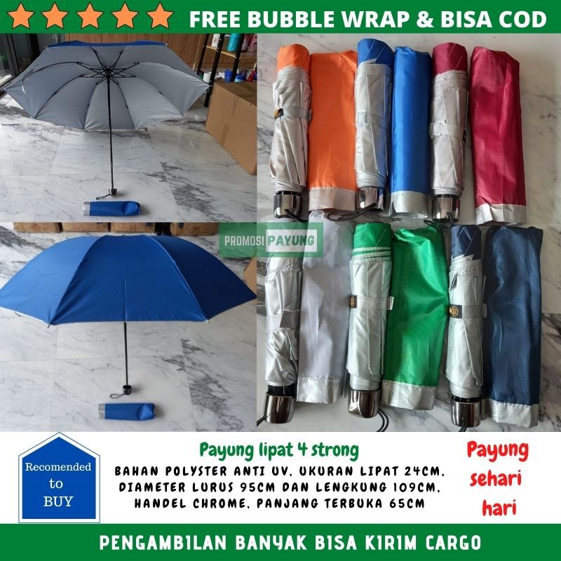 Termurah Olahraga & Ou di Kabupaten Landak Payung Lipat 4 Lapis Silver Anti Uv Gagang Chrome Warna Cerah Orange Biru Merah Abu Payung Polos dari Promosipayung Kab. Bekasi